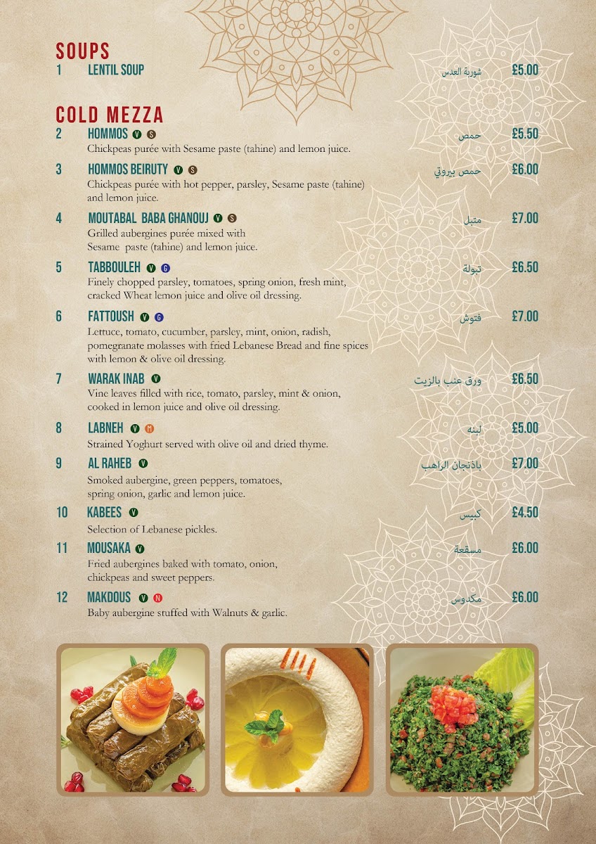 The menu at Mezza House offers a variety of Middle Eastern and Mediterranean dishes structured into several distinct categories to accommodate different dining preferences. Visitors can find a selection of salads, side orders, main plates, and beverages suitable for casual dining or takeout.